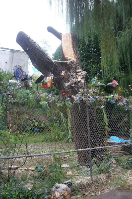 La Plaza Cultural. I happened by minutes after the workers left. I spoke with someone who lives nearby. A branch had fallen earlier that morning in the high winds. So the whole tree was cut down "just in case." This resident didn't think that was necessary.