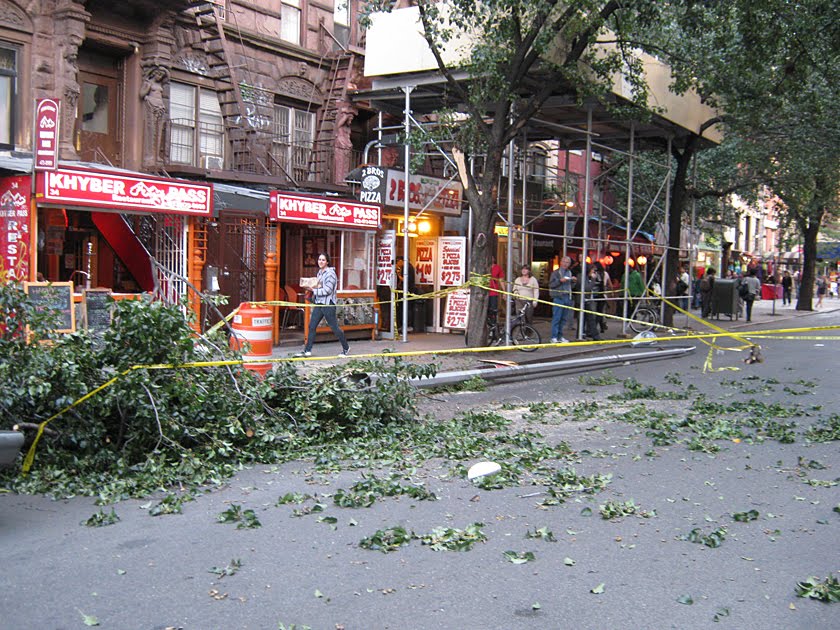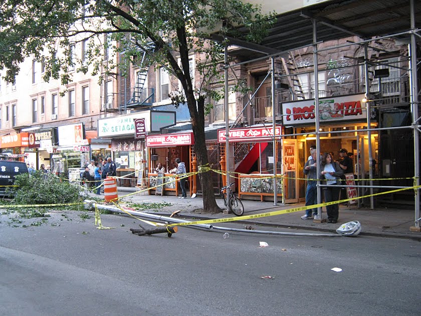 Thanks to EV Grieve reader Steven Matthews for sending along these shots from earlier this evening... here on St. Mark's Place between Second Avenue and Third Avenue... it appears a light pole fell ... no word on any injuries...