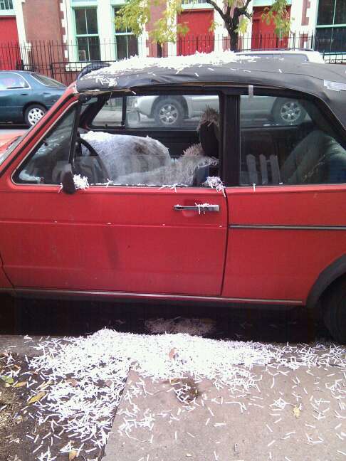 I dunno... Leftover from the Conflux festival? A belated statement about Enron? UFOs? Random act of shredding violence against VW Rabbits? Need some answers here, people!