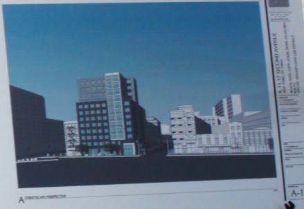 BoweryBoogie attended last night's CB3 subcommittee meeting to hear more about the future of lower Second Avenue at First Street. He took that photo of the proposed 12-story building coming to where the Mars Bar is... and may return in two years.