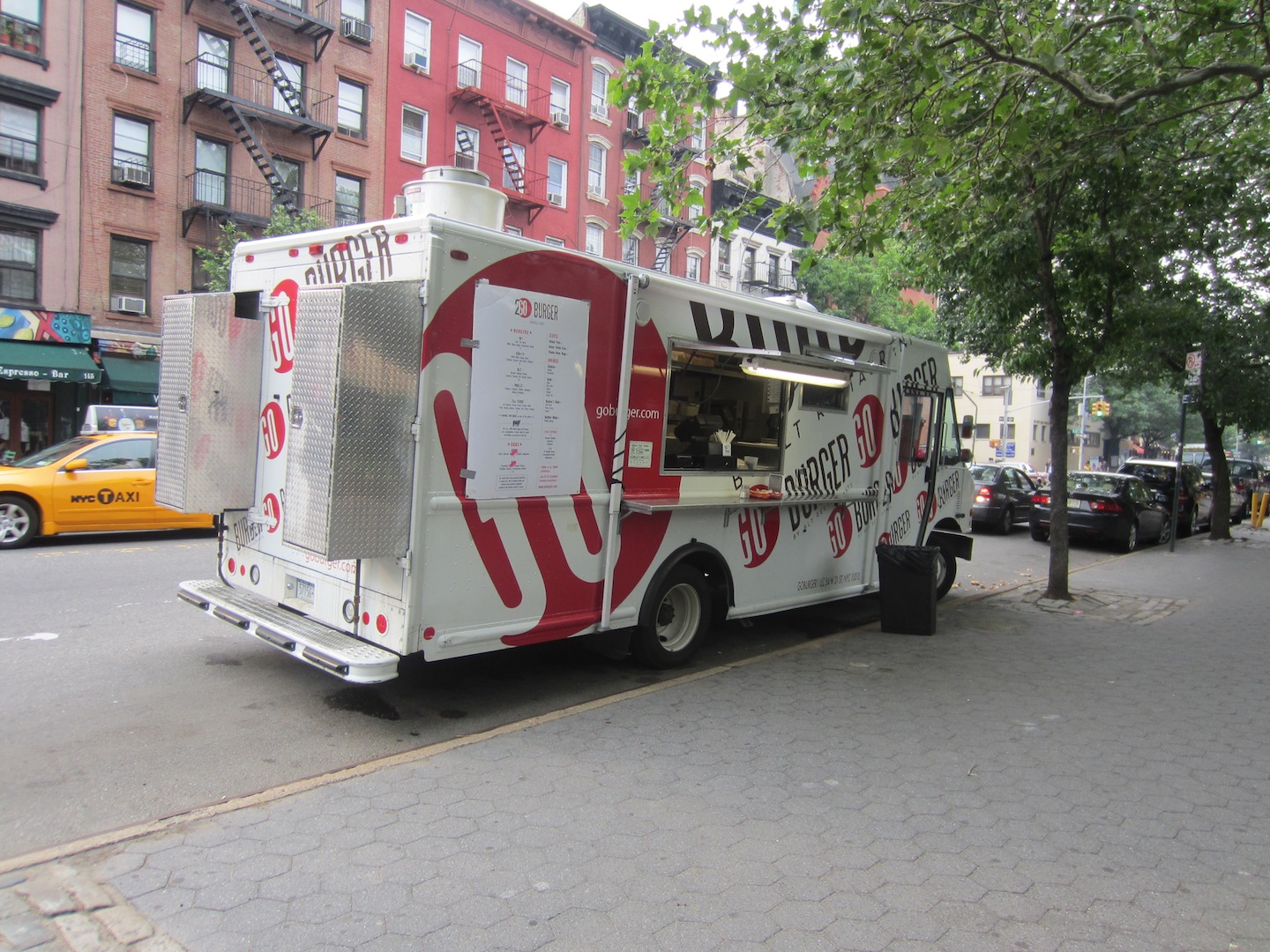 We were having an email conversation with Dave on 7th last evening. He asked if we saw the Go Burger food truck on Avenue A near Ninth Street. Why, yes — we even took a photo...
