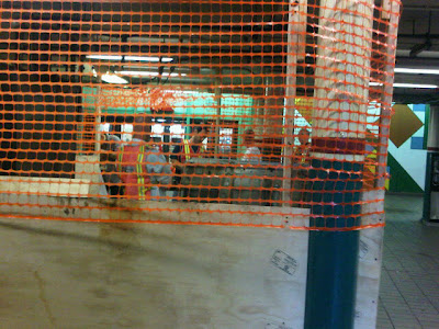Or "customer assistance booth." Since tokens are long gone... They broke it down and took it away this morning, as these photos by Elizabeth Frayer show...