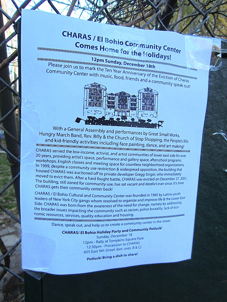 Tomorrow in Tompkins Square Park: CHARAS/El Bohio Community Center celebration
