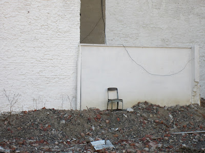 ... perhaps they entered to prop up this chair. Rather like the look of this now. Still life. Or target practice.