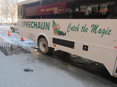 i saw the leprechaun bus too. where are they busing these people in from? at 8AM already.