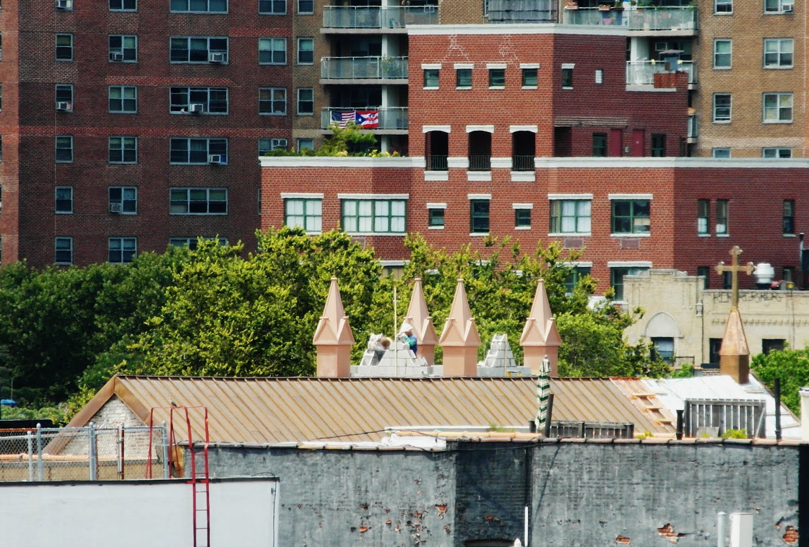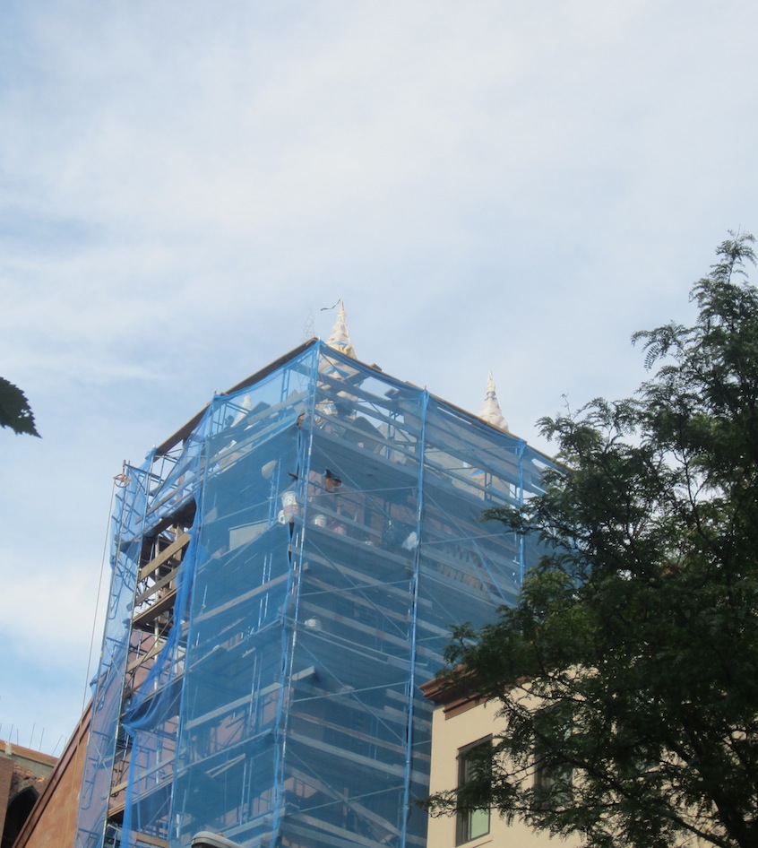 On Tuesday, Dave on 7th pointed out the arrival of the small (baby?) spires atop the south tower of St. Brigid's on Avenue B at East Eighth Street...