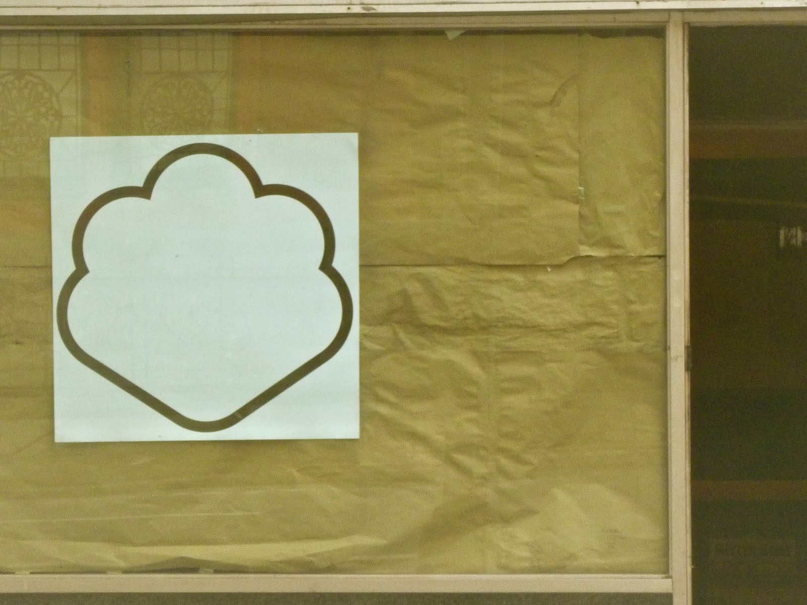 Back on May 18, Jeremiah Moss noted the rather cryptic symbol on the window of the former Estroff Pharmacy on Second Avenue near St. Mark's ... He asked, Fro-yo? Mashed potatoes? (The sighting also brought on an anxiety dream) ...