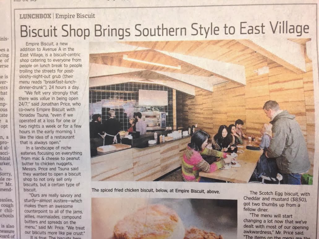The Wall Street Journal is the latest media outlet to write about Empire Biscuit (The Wall Street Journal, subscription required)
