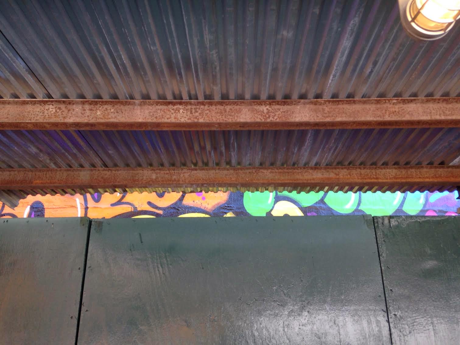 Workers yesterday erected a sidewalk bridge along the Houston/Bowery Mural Wall, mostly blocking the work of the current artist in the rotation — veteran Bronx graffiti artist Cope2.