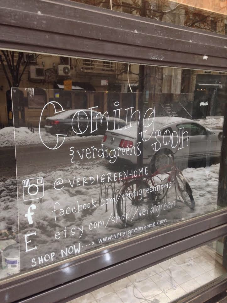 Coming soon signs are up at 122 E. 7th St. between Avenue A and First Avenue, where Verdigreen will be opening a new shop.