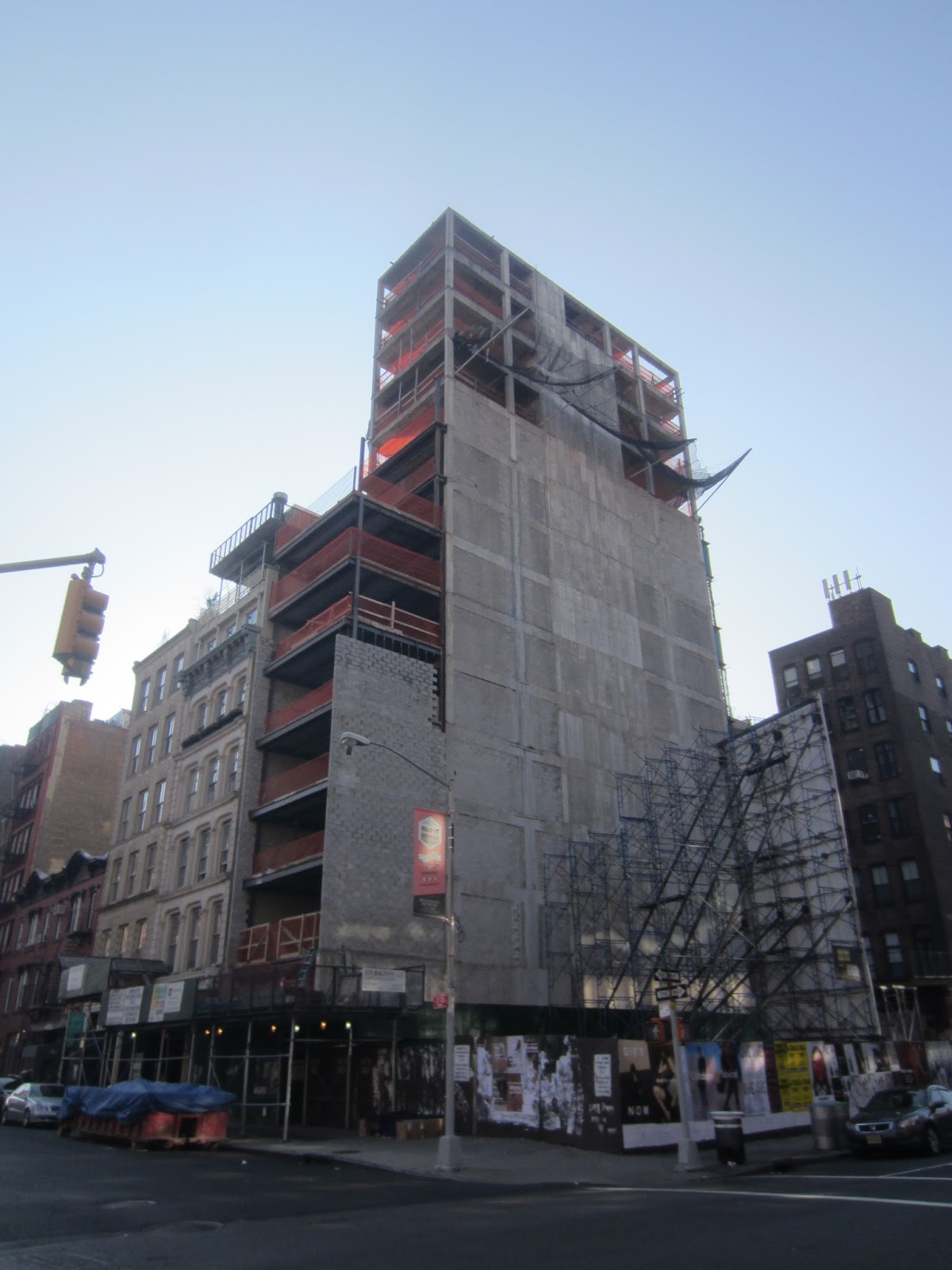 From Lafayette, you can see that workers are adding on to the Great Jones-facing exterior of the building ...