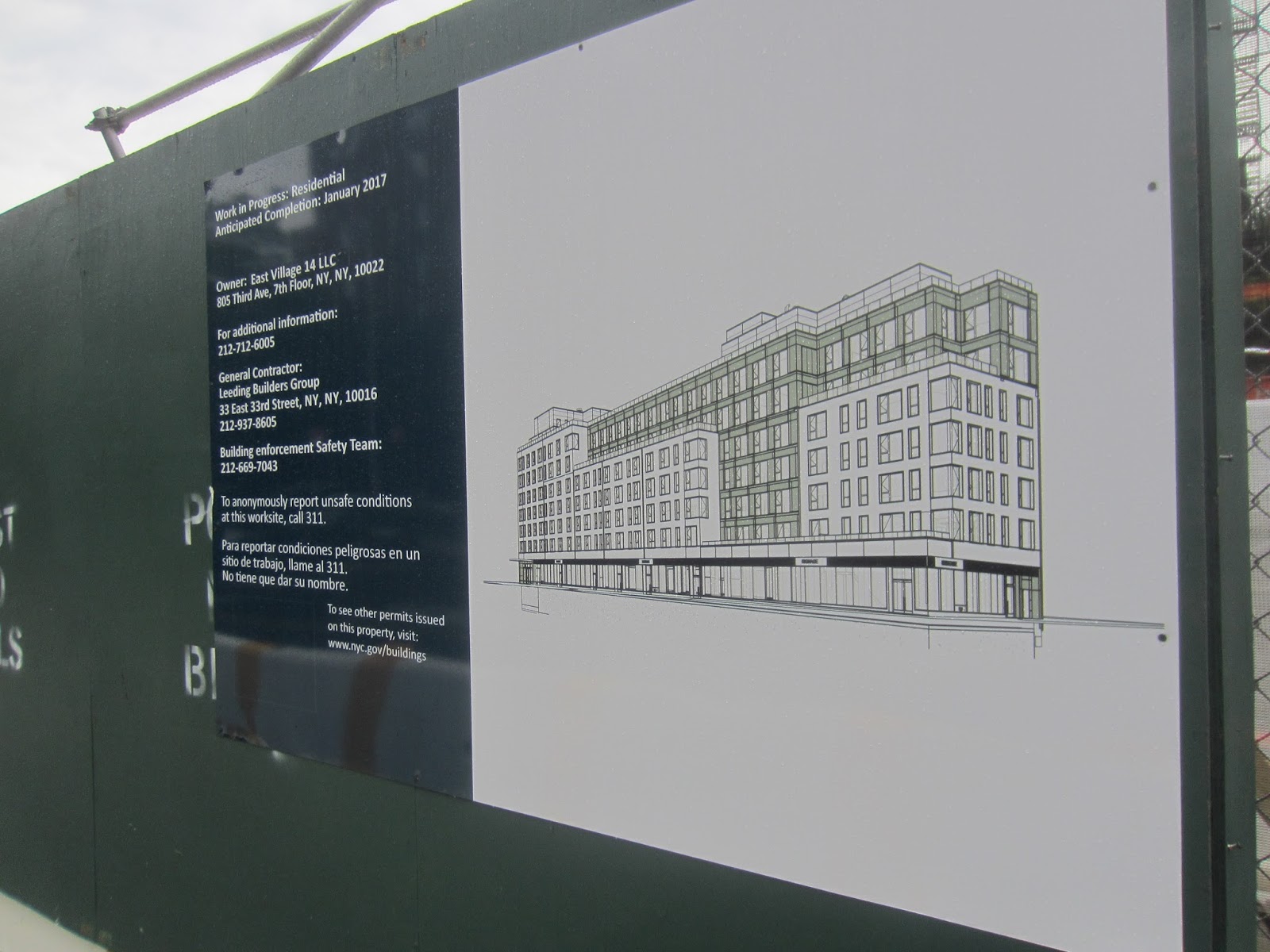 A projects listing at the website of Leeding Builders Group (LBG), a New York-based construction manager specializing in commercial, residential and hospitality projects, features some different renderings. (There are two addresses — 500 E. 14th St. and 524 E. 14th St. Neither of these renderings are ID'd by address.)