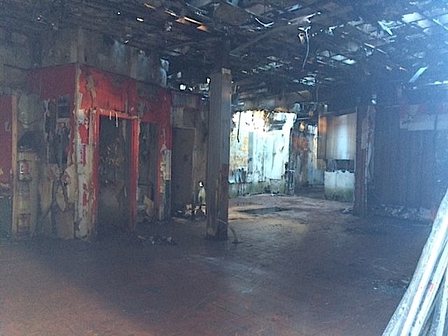 The storefronts sat empty for years, waiting for development. Here's the corner in 2013...