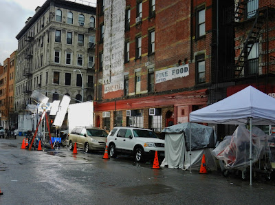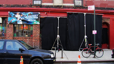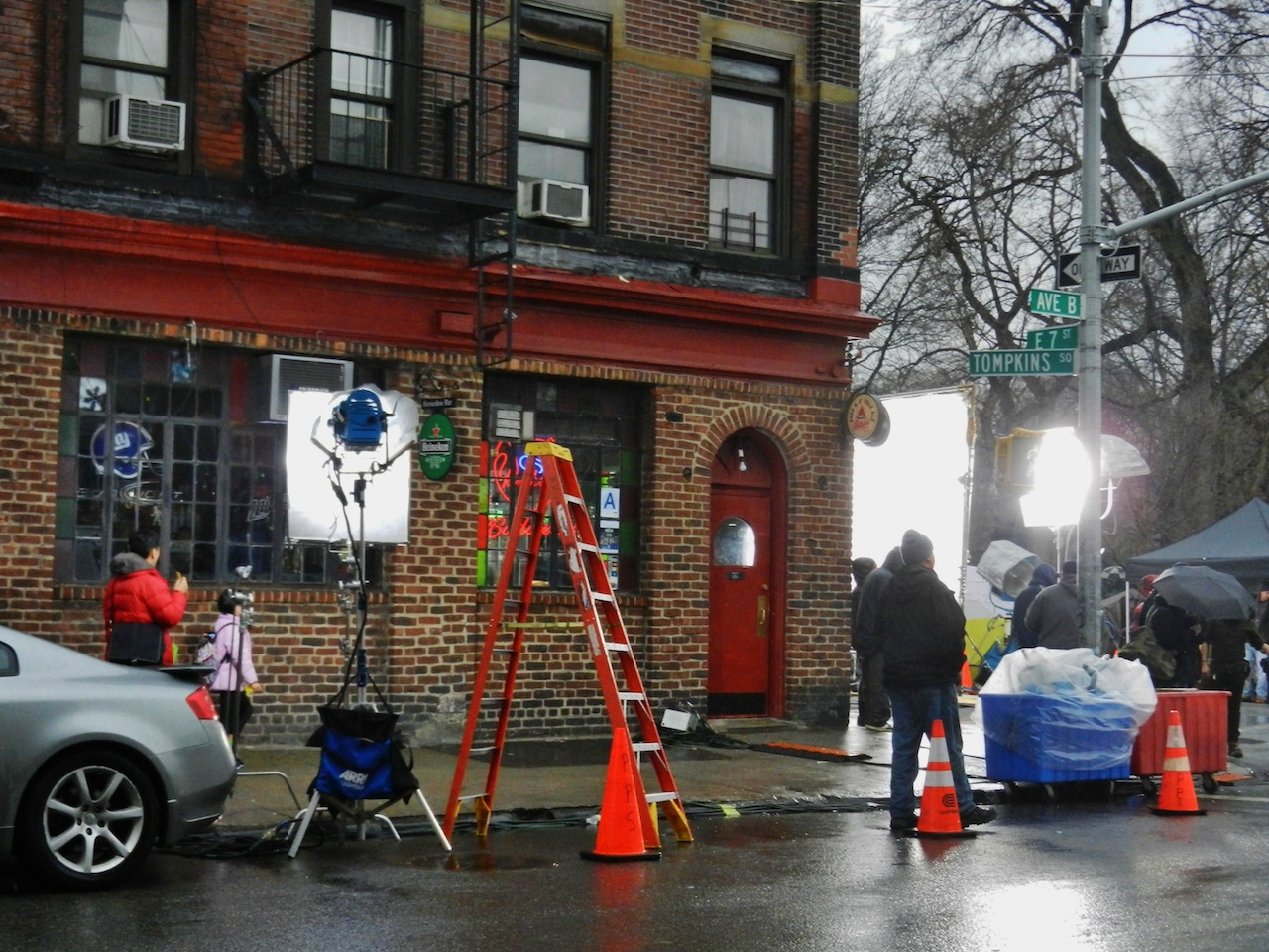 Oh, just another shoot at Vazac's/7B/Horseshoe Bar today … here at East Seventh Street and Avenue B where the CBS show "Unforgettable" is filming… at Lonnegan's!