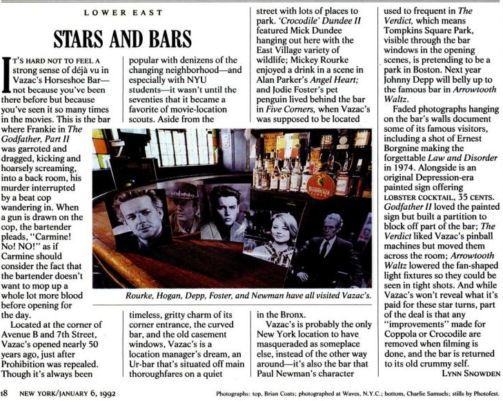 A reader shared this video... a fan of 7B/Vazac's posted the clip on Vimeo last December... a montage showing the various TV shows/movies filmed at the bar on Avenue B and East Seventh Street through the years...