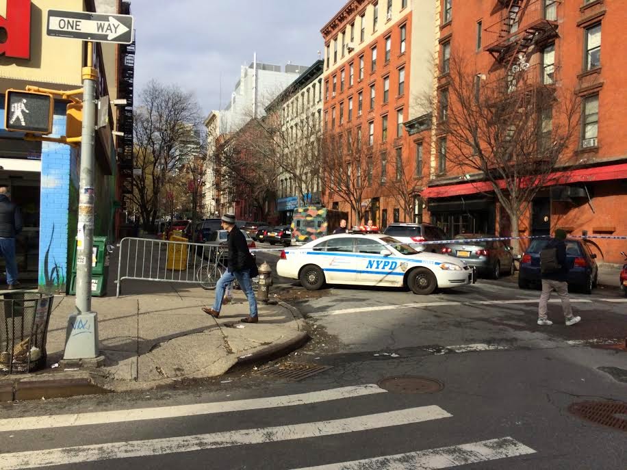 Multiple readers have told us that East Fifth Street between First Avenue and Second Avenue has been closed since this morning. Only residents are allowed onto the block.