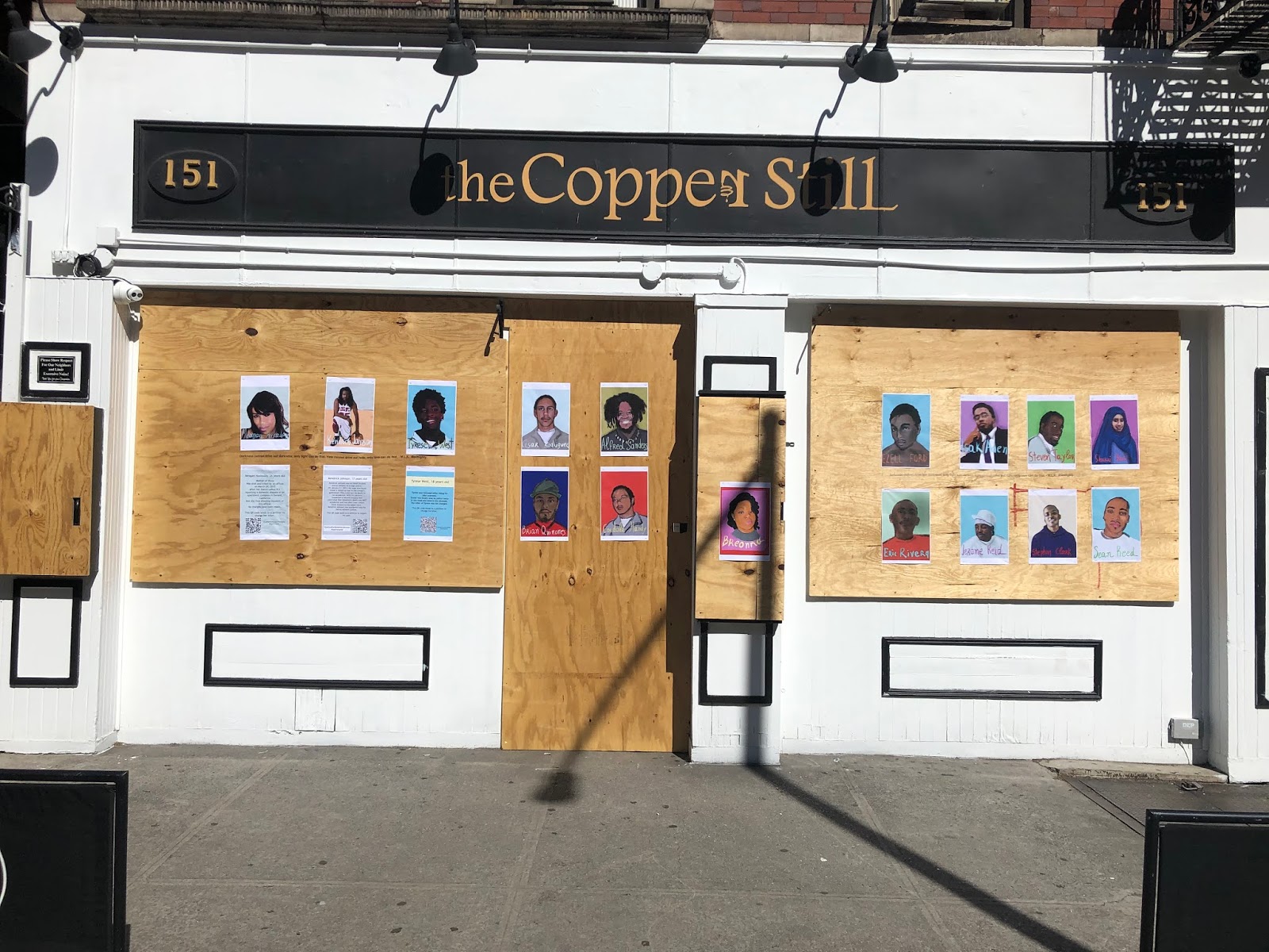 Artists selected for this installation are street photographer Kobie Proctor, whose images include several shots from recent Union Square and Astor Place-based peaceful protests. His slideshow is shown on the St. Ann’s Warehouse walls, with permission from the performance space.