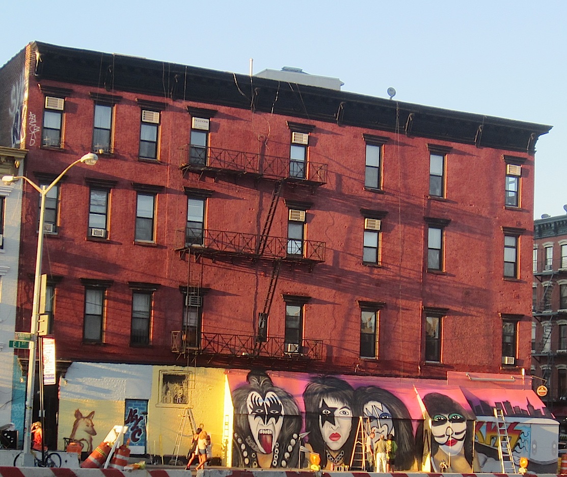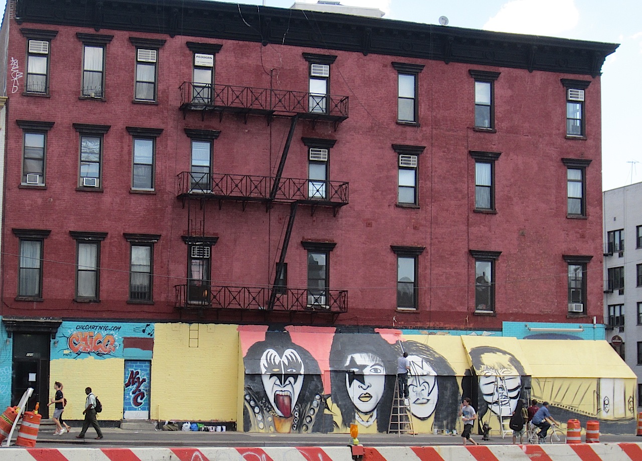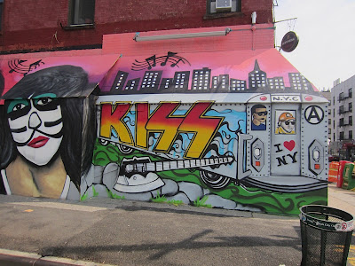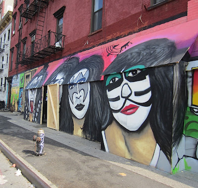 We didn't get a chance yesterday to check out the progress of the temporary Kiss mural going up outside the former Nice Guy Eddie's on East First Street at Avenue A ...