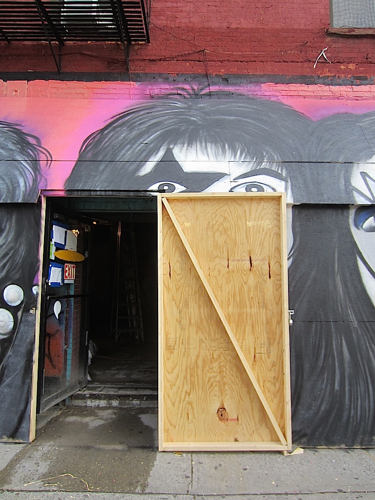 ... but it appears he will be painting the plywood during renovations of the new restaurant opening here on Avenue A and East First Street...