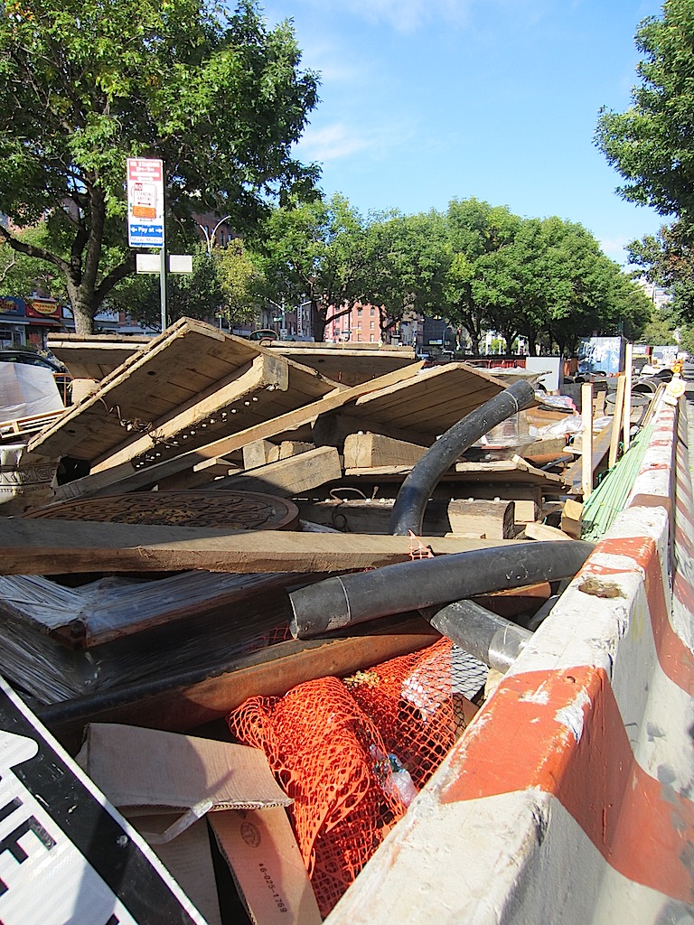 On June 14, reps from the NYC Department of Homeless Services (DHS) taped flyers to the remaining poles along here...