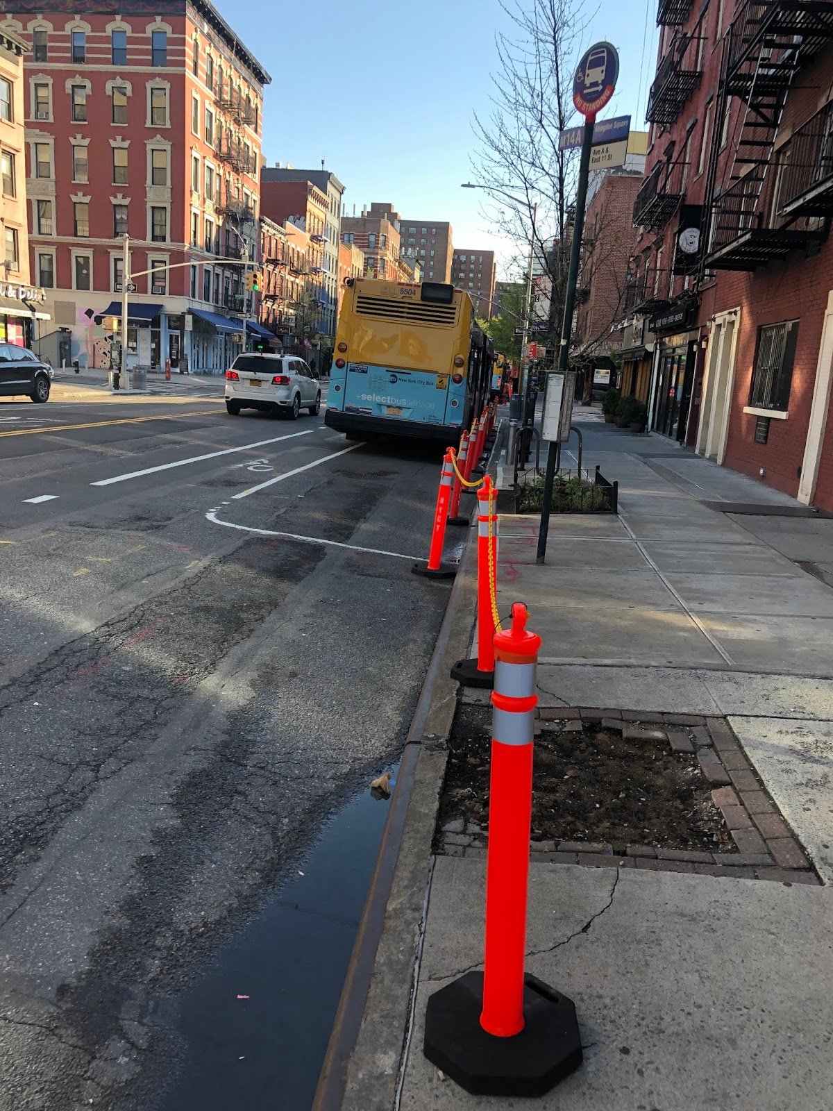 newly painted dedicated bus lanes on 14th Street. (The Coalition