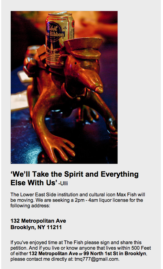 Yesterday, Max Fish posted the official closing announcement on Instagram, though they vow to return again one day: