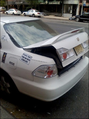 EV Grieve reader Empire checks in with these photos. Is this some kind of new public art? Empire notes: "It's parked facing the wrong direction (against traffic, albeit in a proper spot). Then there are stickers on it that say, 'Please, don't take me into a museum' ... and 'Google me, asshole,' which i tried to do, but couldn't make out the letters in the tag."