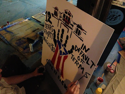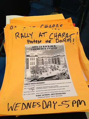 Aside from noting the one-year anniversary of the sidewalk bridge's expiration date, there is some other activity to report here at the former PS 64 and CHARAS/El Bohio community center on East Ninth Street and 10th Street just east of Avenue B.