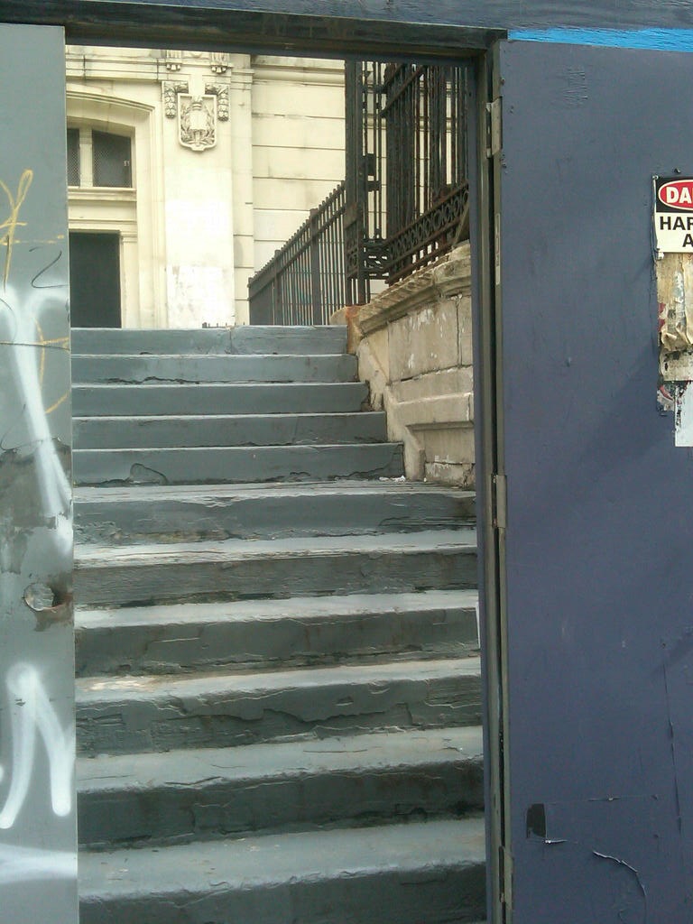 @fashionbyhe sent along the photo below, asking what was going on with the former PS 64 and noting that the permits for the sidewalk bridge expired...