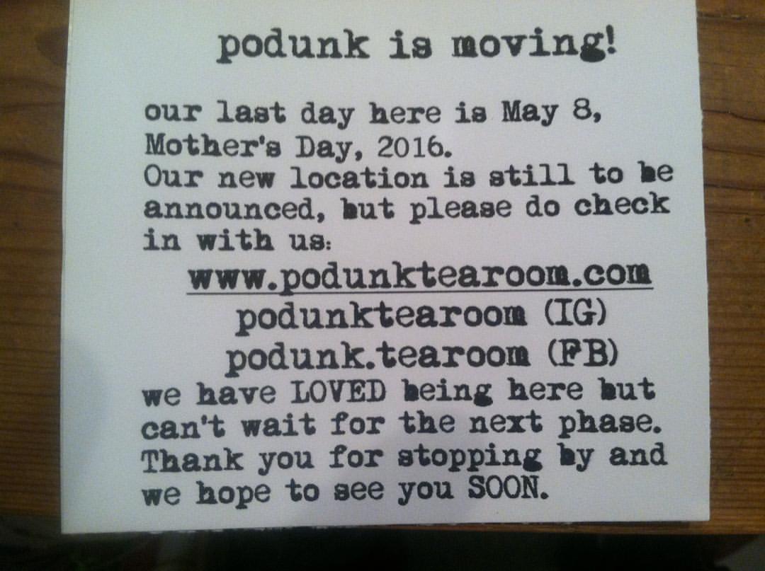 Podunk, the tearoom on East 5th Street, is moving after Mother's Day