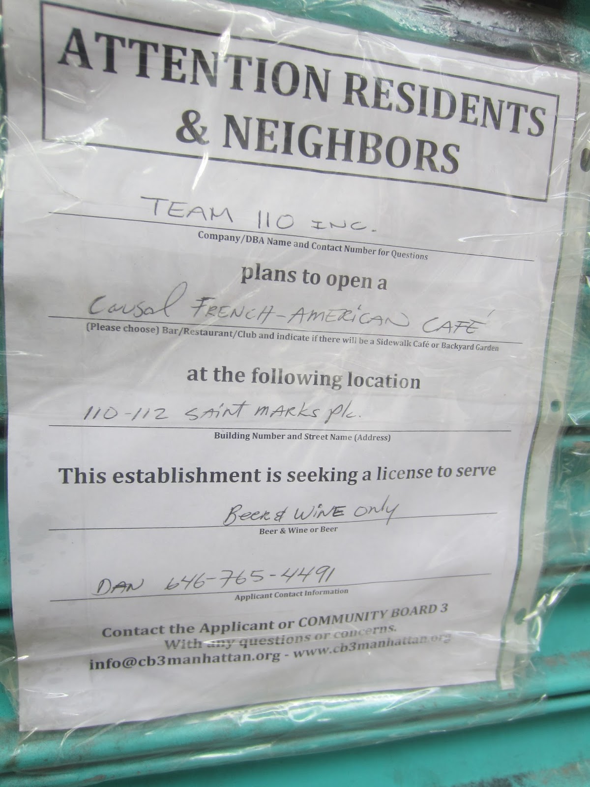 Here's a look at some of the East Village-related items. (We don't have any info on the applicants just yet.)