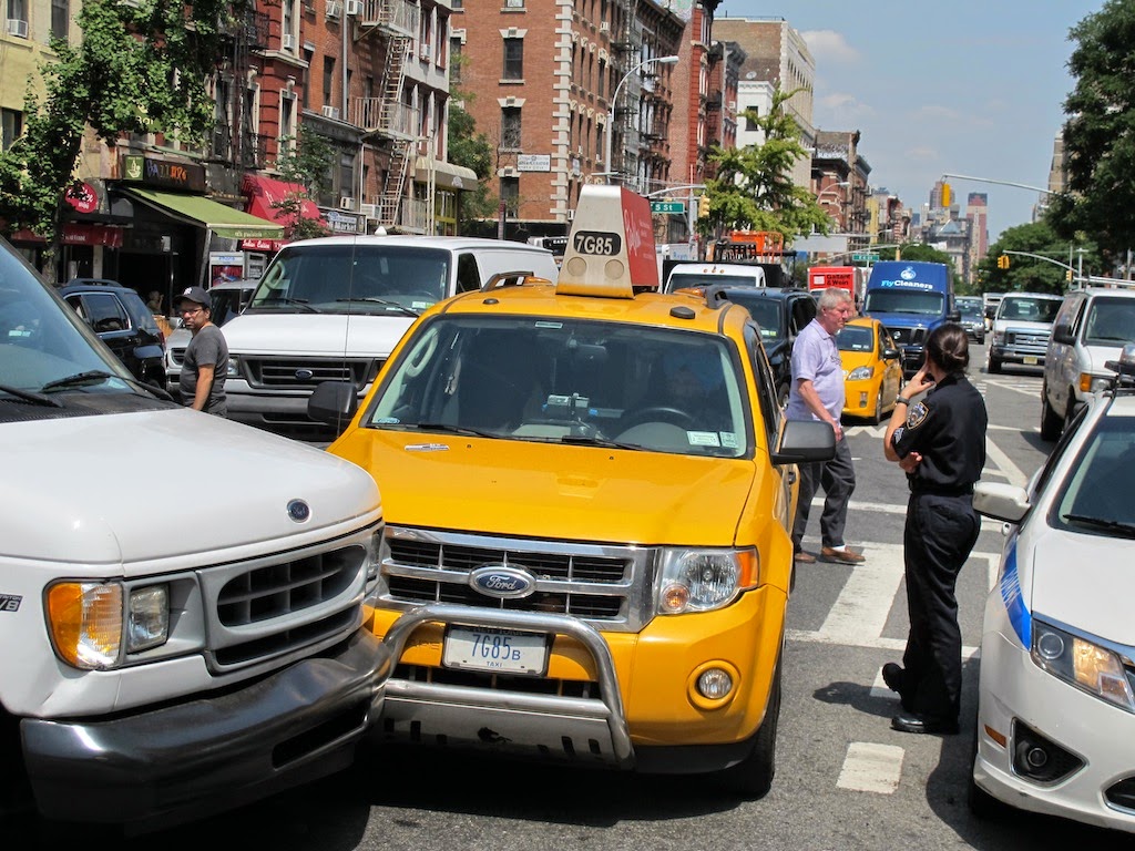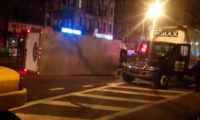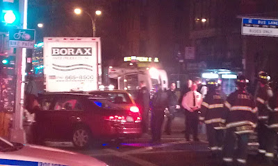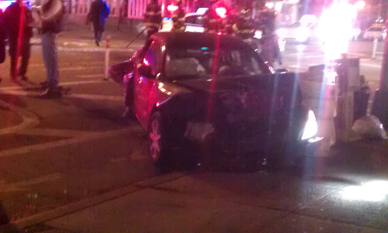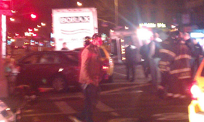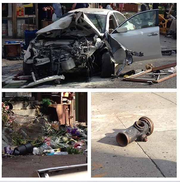 Post reports that the car, a white Nissan Altima, hit four people. The most seriously hurt is a East Village Farm & Grocery worker who had been setting up the flower stand. He is in critical condition at Bellevue. A bicyclist was also struck, and was listed in stable condition.