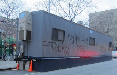 In mid-2011 a drab, gray trailer popped up on the South side of First Street. The trailer functions as a temporary office for workers on the 2nd Avenue subway line. Centre-fuge Public Art Project will transform the trailer for one year into a rotating street gallery. Between 2 to 7 artists at a time will create work on all visible sides of the structure. The art will change over once every two months on a pre-set weekend. Artists must submit proposals in order for their work to be deemed appropriate for the broader community. The artists will supply their own materials.