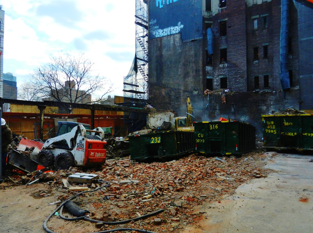Sounds of demolition have been coming from inside 112-120 E. 11th St. between Third Avenue and Fourth Avenue... as you know, these five former residential buildings are coming down to make way for a 13-story hotel for Marriott’s Moxy brand.
