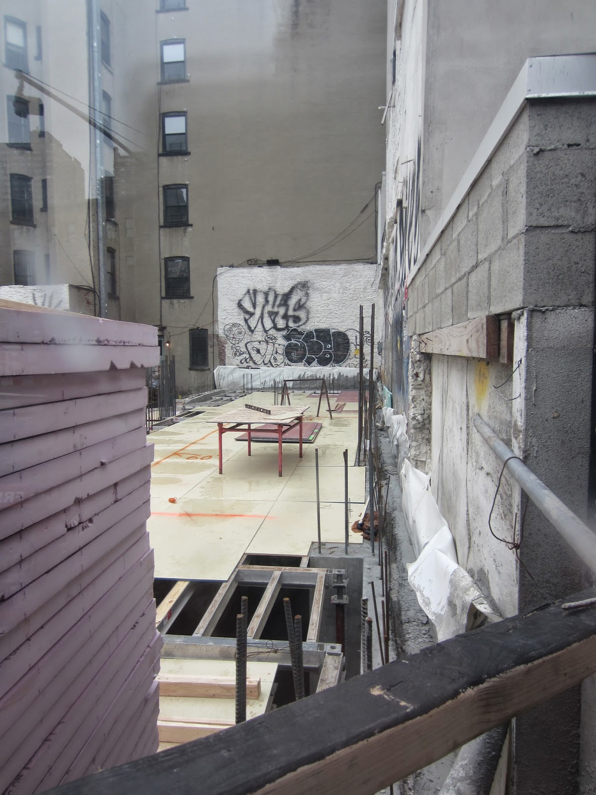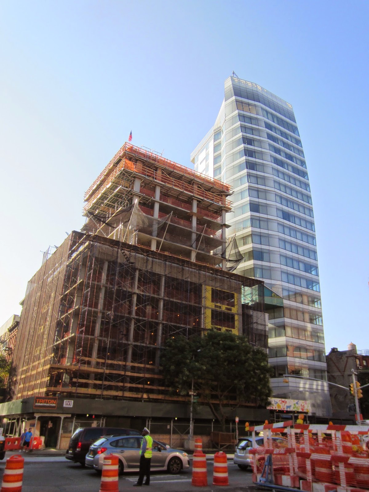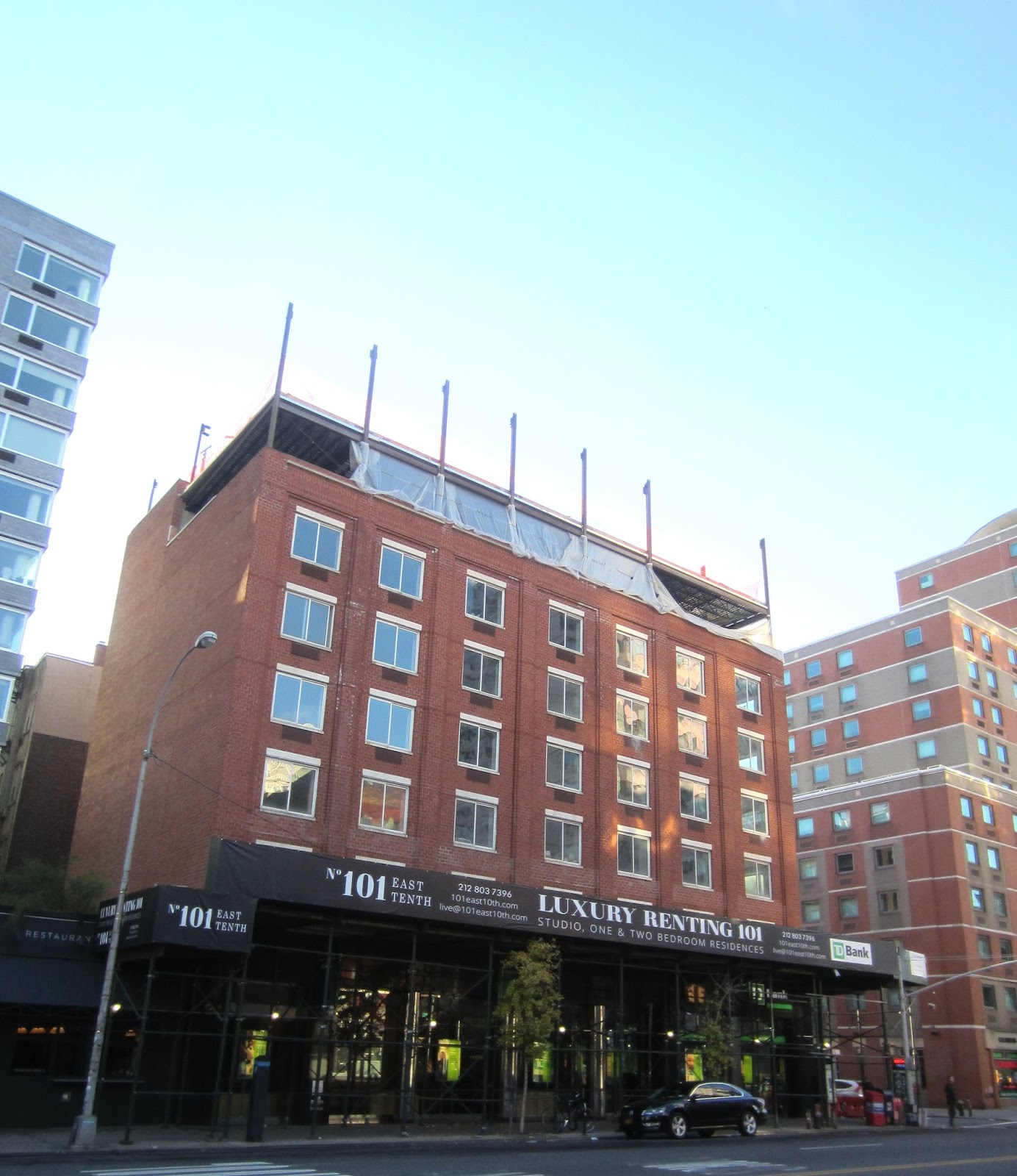Meanwhile, the rental process is now underway. The broker bunting is up on the plywood announcing this as Luxury Renting 101 (as in 101 E. 10th St.).