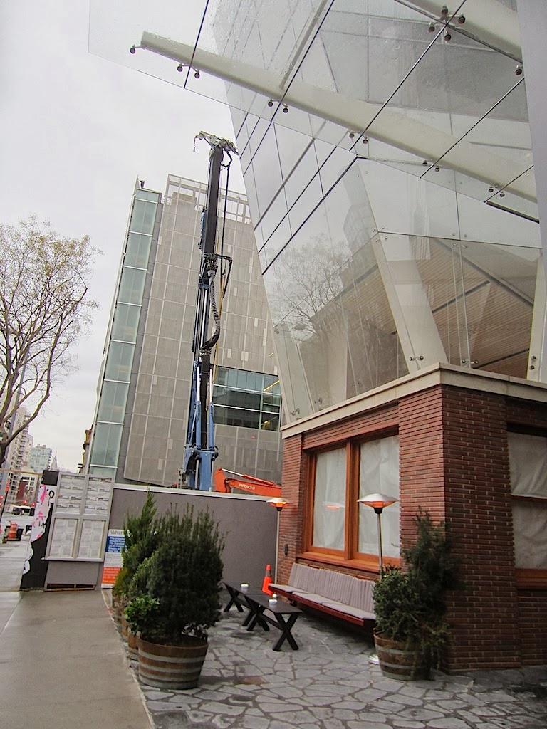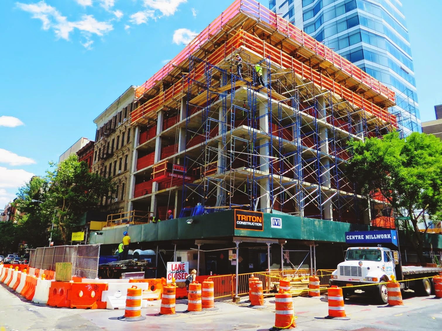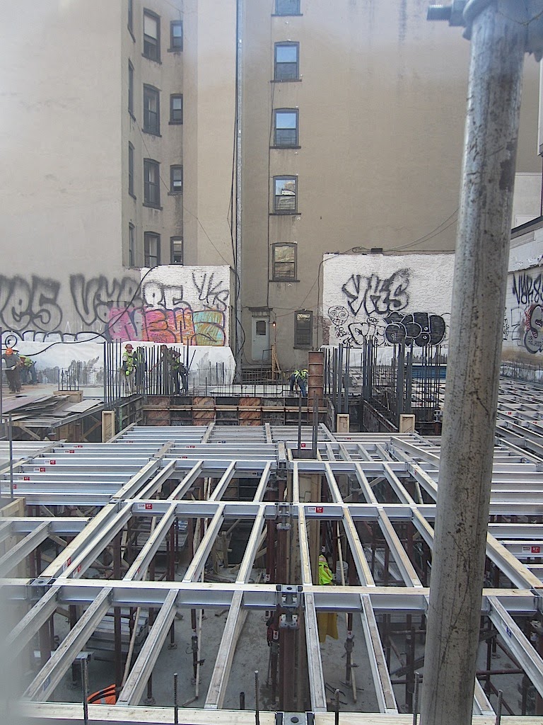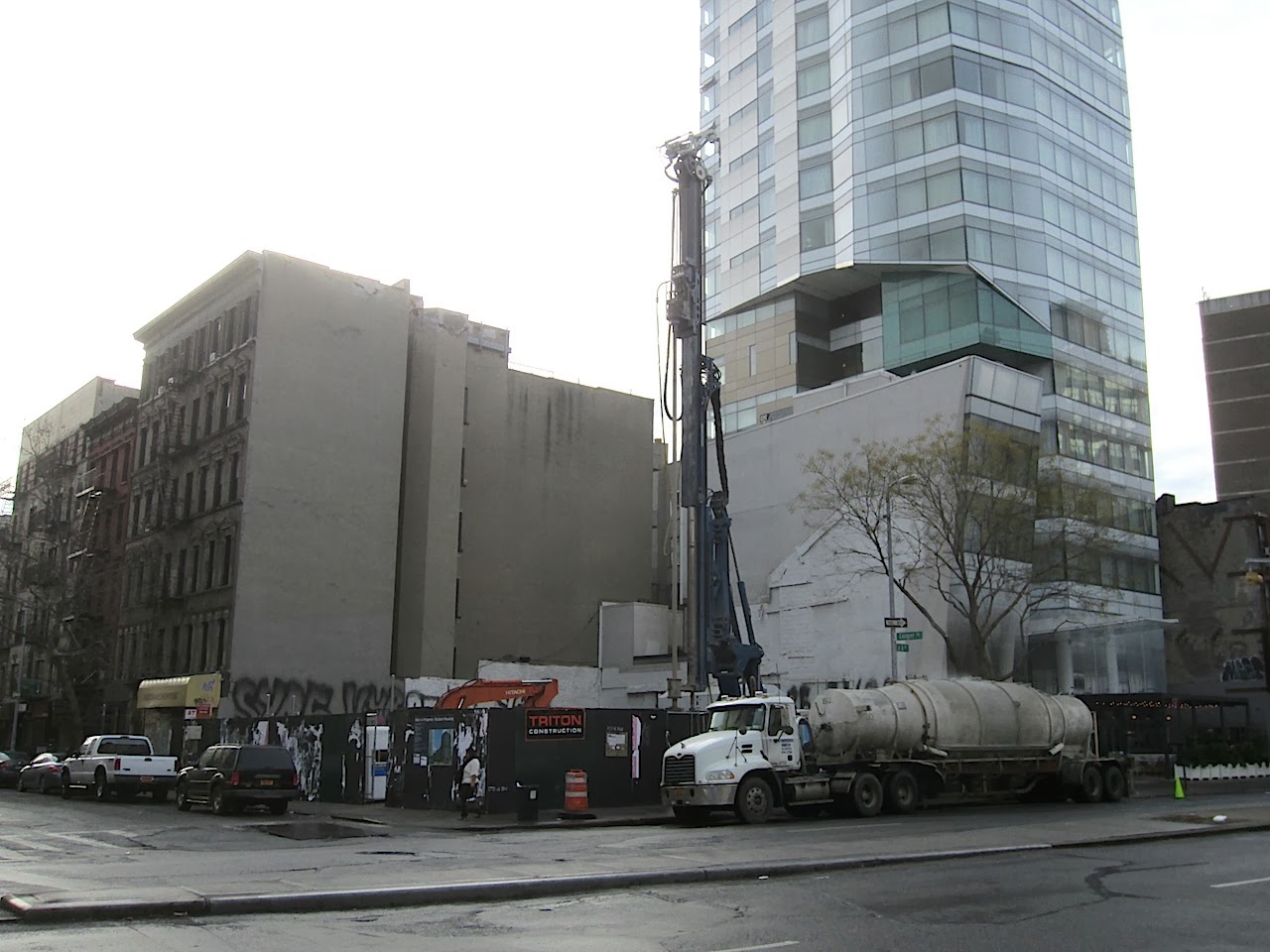 Meanwhile, the rental process is now underway. The broker bunting is up on the plywood announcing this as Luxury Renting 101 (as in 101 E. 10th St.).