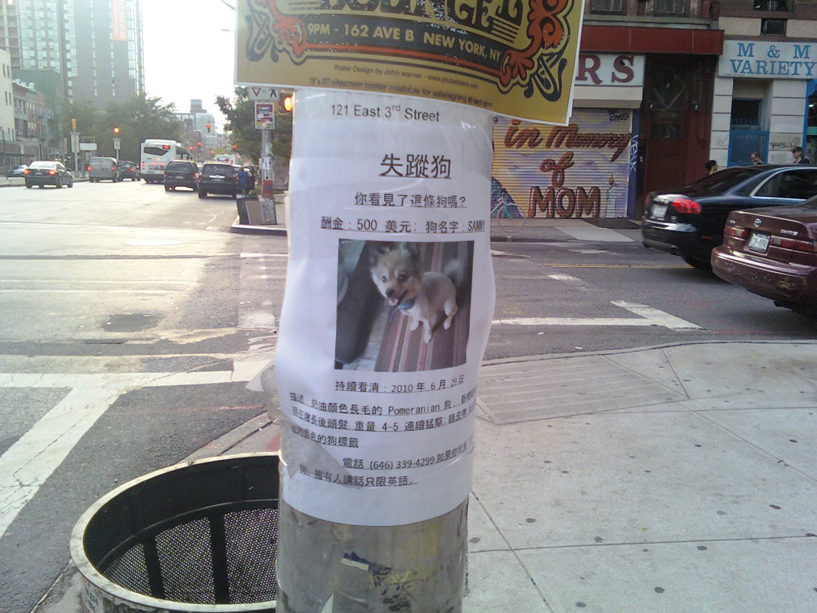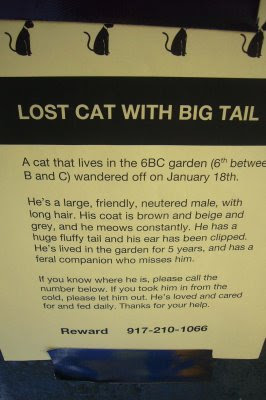 As for the new flyers, she said there are three-four people putting up new notices every day in hopes that someone will make the connection. She has also posted signs in Chinese, such as this one on Houston at Avenue B ...