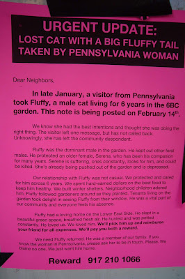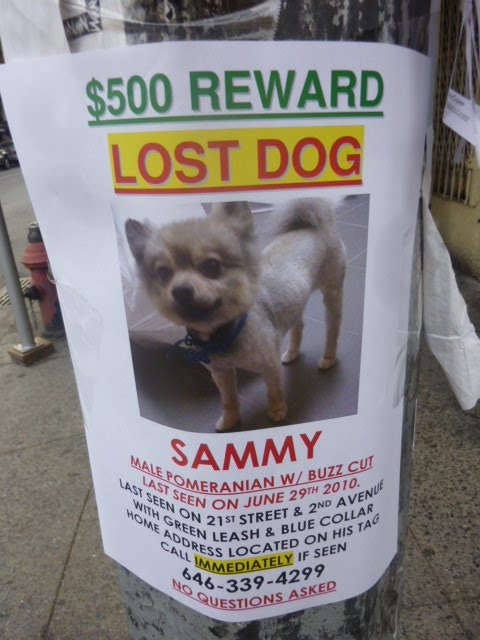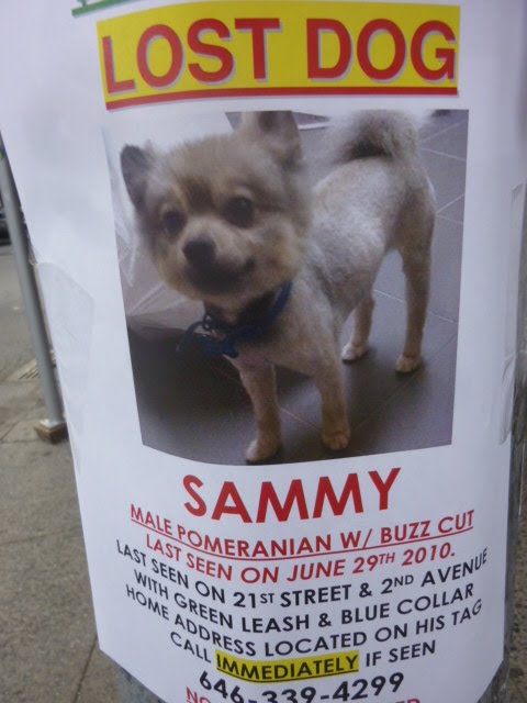 Unfortunately, missing (or found) pet signs are fairly common. However, there's something different about these flyers ... they're everywhere, for starters... and new flyers seem to go up daily... Several readers have asked me if, maybe, Sammy, a Pomeranian, had been found...