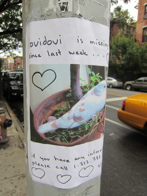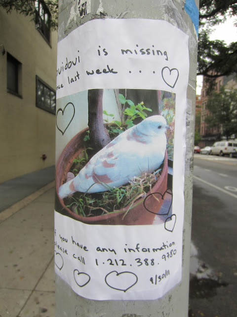 A reader spotted a couple looking for the bird tonight along Avenue B... sign spotted here at East 10th Street.