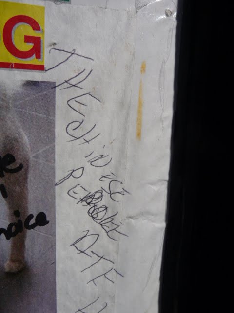 Also, we had noted that various people had been adding comments to the flyers... here's one of the flyers from Second Street and Avenue A that I never noticed before...