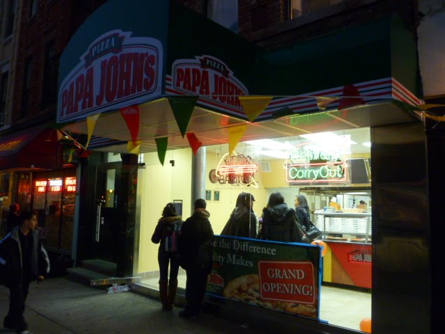 Popular New York blog EV Grieve [Editor's note: Woo!] has reported that a Papa John's storefront has appeared on First Avenue in an area of New York City's East Village that's especially pizza-dense. Back in March, the blog reported several pizza restaurants — such asLuzzo's, Motorino, Piola, Tonda, and more — having recently opened.