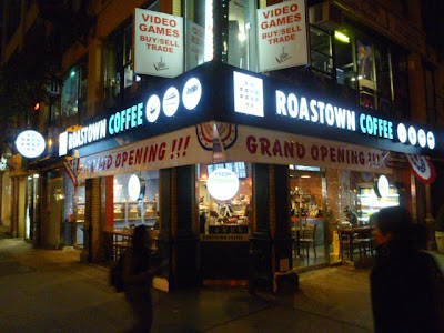 If you walked by the corner of Second Avenue and St. Mark's Place, then you saw the Roastown Coffee all dandied up and ready for action... the signs out front say the place opens Tuesday...