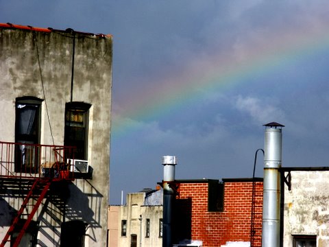 …EVG reader Cliffdweller sent along this photo taken from the East Village that afternoon… showing a (the?) rainbow ending, seemingly, at the Chrysler Building…