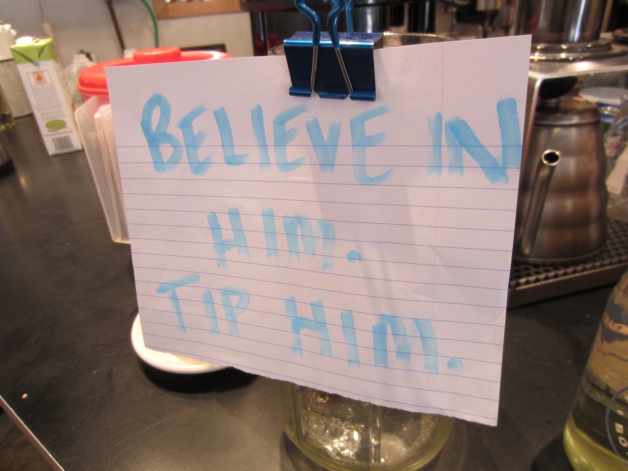 Anyway, the least that you can today is tip, like at Everyman Espresso on 13th Street.