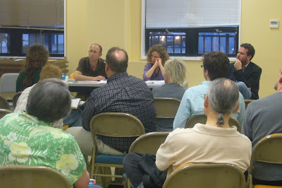 A representative from Scott Stringer's office, who arrived late, confirmed that Moss met with Stringer yesterday morning and put it in writing that the hotel is willing to pay to soundproof windows. [CORRECTION: The representative from Scott Stringer's office, Greg Kirschenbaum, did not indicate that Borough President Stringer met with Moss: he stated that Moss had reached out to him to offer the soundproofing and that Moss then provided that offer in writing. Stringer did not meet with Moss. We apologize for the error in reporting.] One problem, though: The landlord of 207 Fifth St. is not receptive to such an idea.