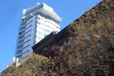 When developers of the Cooper Square Hotel (now the Standard East Village) were buying up properties to demolish to make way for their 21-floor building, two residents of 27 Cooper Square declined to leave their longtime home (the two had secured artists' loft status in the 1980s, and weren't legally required to move) ... and so the circa-1845 tenement became fused together with the new structure.