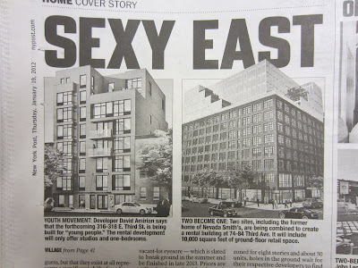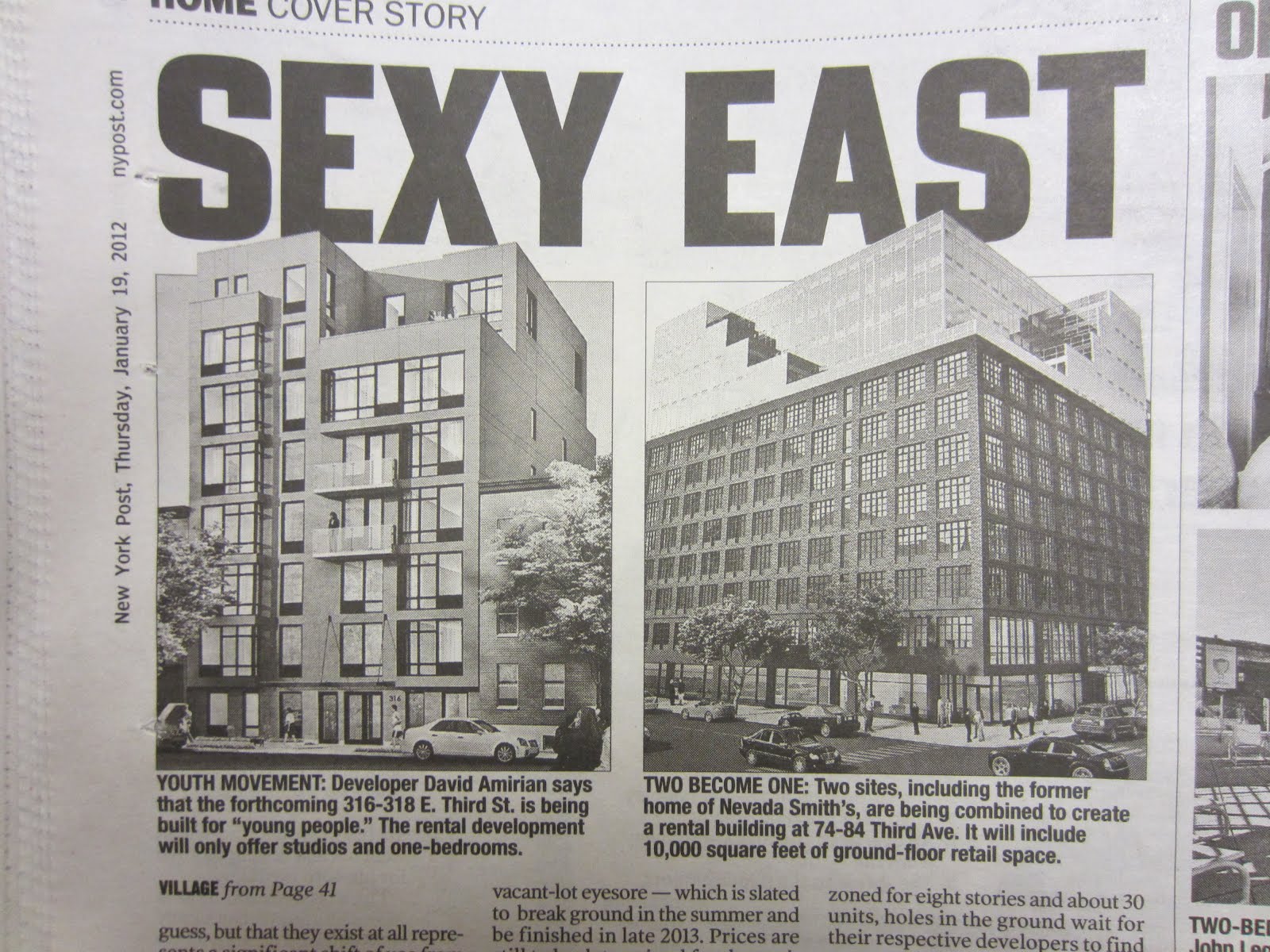 The article also mentions the developments coming to 74-84 Third Ave. (part of which once belonged to Nevada Smith's) and 316-318 E. Third St., which is awaiting demolition to become an eight story, 33-unit apartment building. Developer David Amirian told the Post that he will offer only studios and one bedroom units.