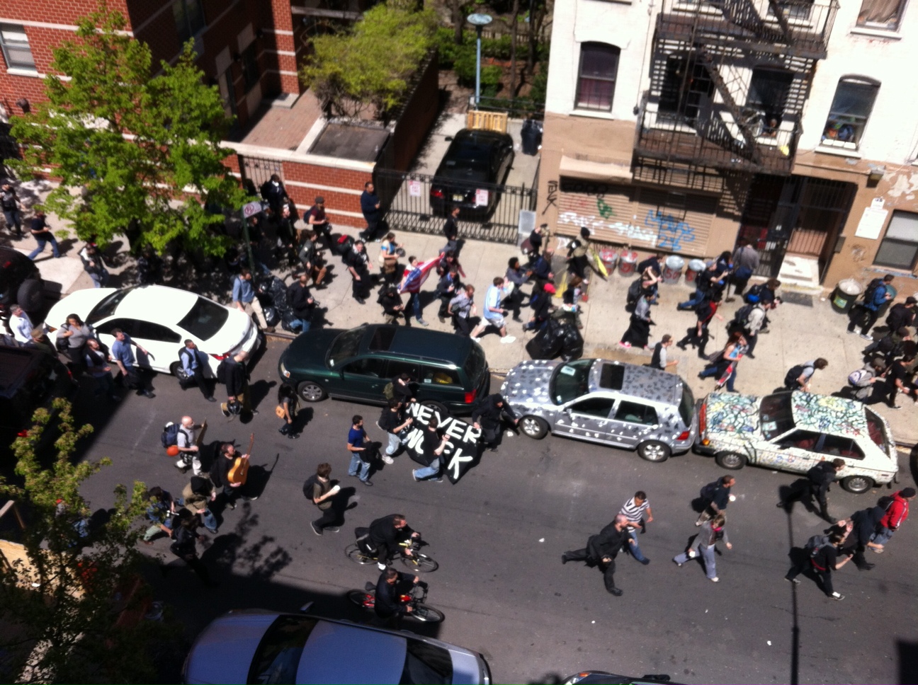 According to accounts in The New York Times and on Gothamist, the group started walking north on Avenue A around 2 p.m. ... when we received these photos from a tipster showing people heading east down East 11th Street...