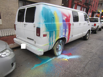 Back in January, we noted the above on East Seventh Street near Avenue A... at the time, we weren't sure if it was some kind of van-owner-created art... or vandalism. (Turned out to be vandalism, or whatever you'd like to call throwing paint bombs at vans.)
