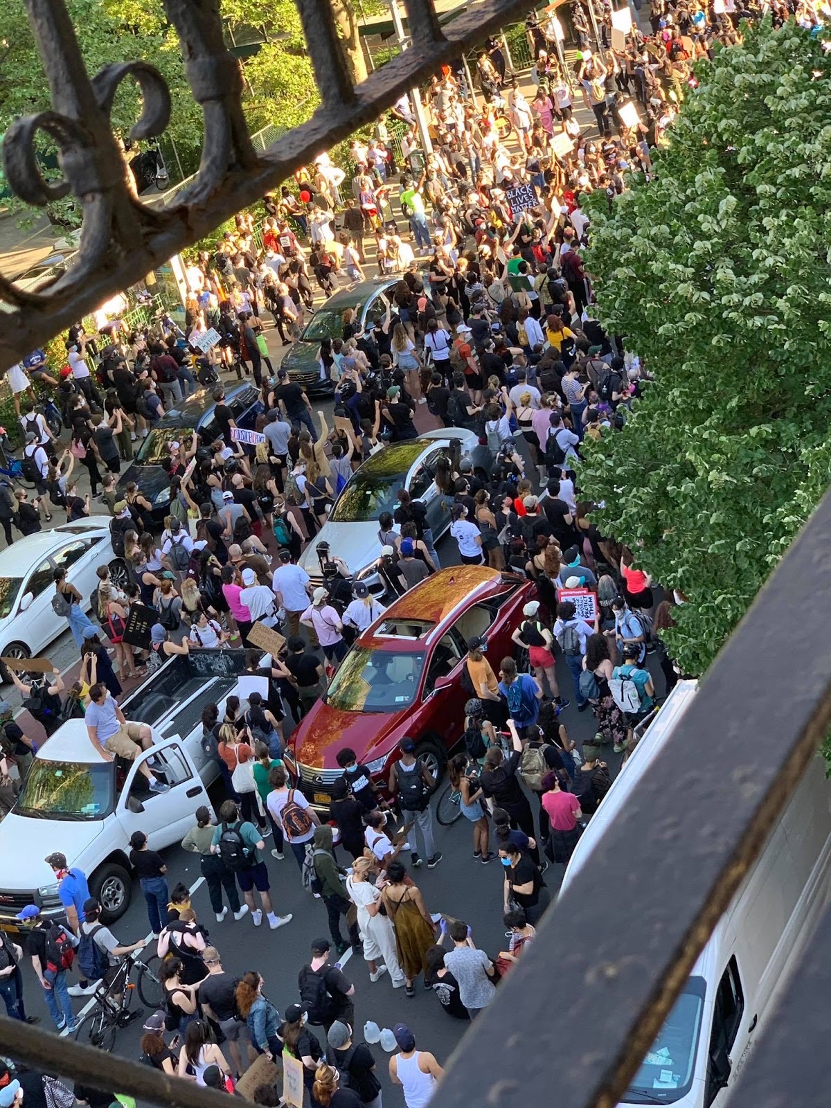 The protests, like others around the country and NYC in recent days, were sparked by the death of George Floyd in Minneapolis this past Monday.